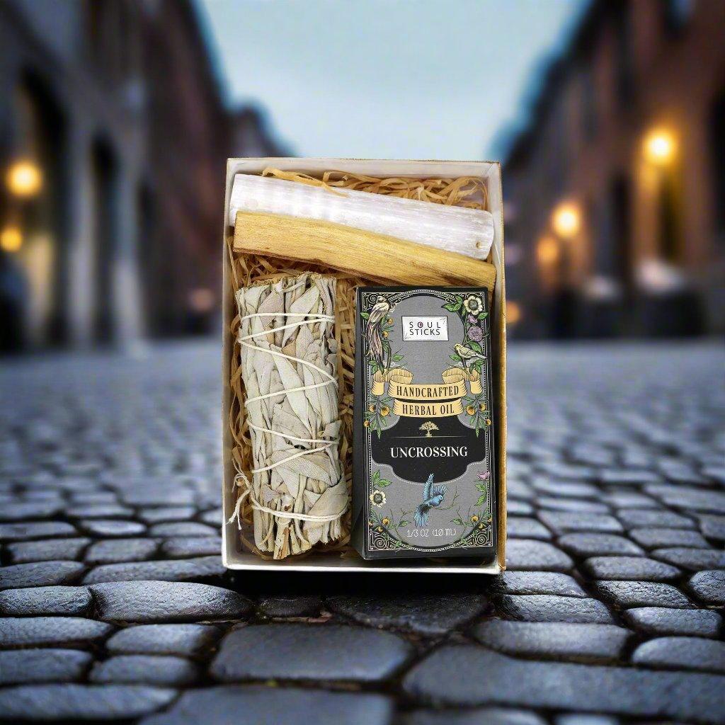 Break free from energetic barriers with an Uncrossing Intention Gift Set. Perfect for removing blockages, this set helps you embrace forward motion, renewed clarity, and spiritual liberation in every facet of life.
